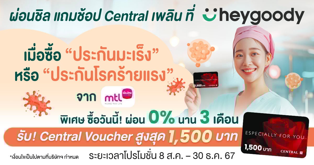 ผ่อนชิล แถมช้อปเซ็นทรัลเพลินสูงสุด 1,500 บาท เมื่อซื้อประกันมะเร็ง หรือประกันโรคร้ายแรง