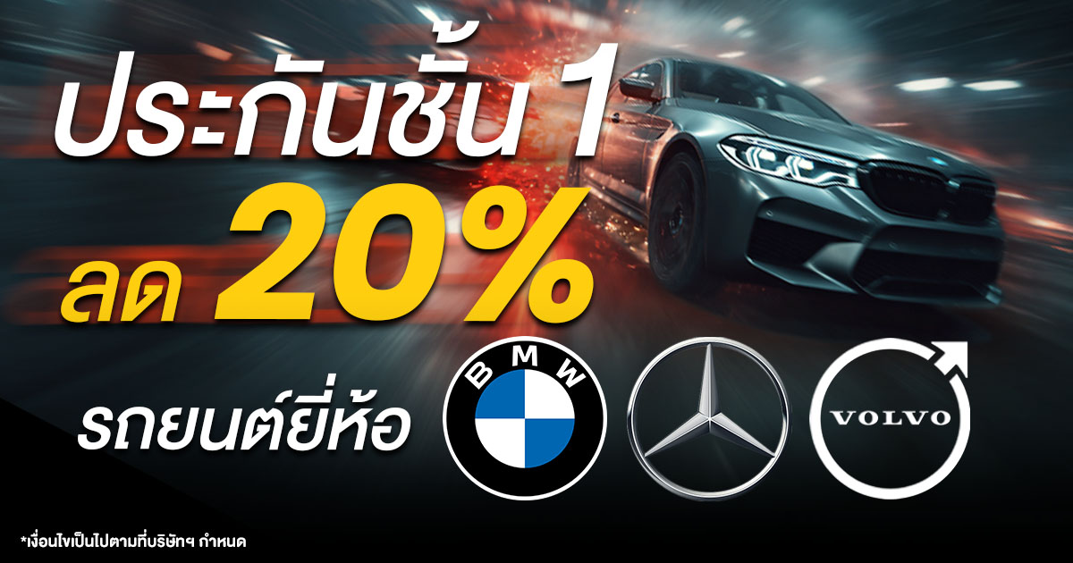 เมื่อซื้อประกันรถ BENZ / BMW / VOLVO ชั้น 1 ลดเลย 20% ไม่ต้องกรอกโค้ด เฉพาะลูกค้ารถคันใหม่