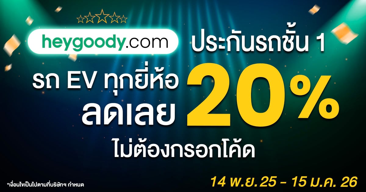โปรโมชั่นนี้เฉพาะผู้ที่ซื้อประกันภัยรถยนต์ไฟฟ้า ชั้น 1 (เฉพาะลูกค้ารถคันใหม่) ผ่านเว็บไซต์ heygoody.com