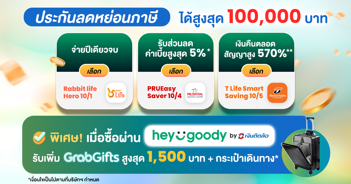 บริหารภาษีแบบสมาร์ท กับ 3 แบบประกันสะสมทรัพย์จาก ที ไลฟ์ ประกันชีวิต พร้อม Central Voucher สูงสุด 100,000 บาท และ GrabGifts สูงสุด 1,000 บาท